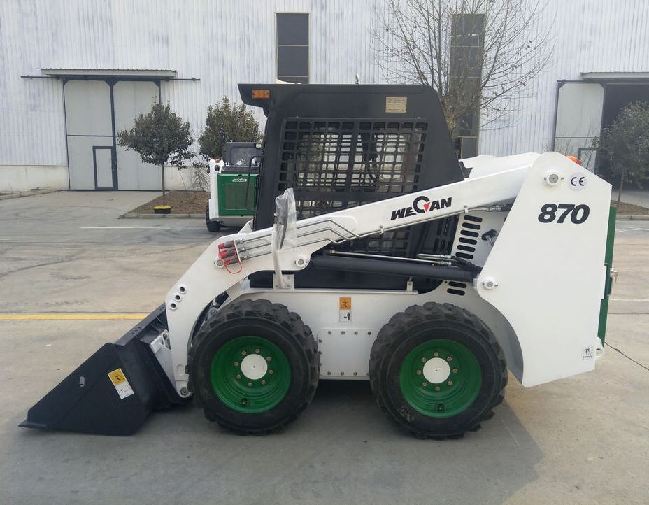 Мини погрузчик с бортовым поворотом с грузоподъемность 870 кг, модель Wecan WT870 – это обновленная серия погрузчиков Wecan, с новой конструкцией механизма подъема стрелы, улучшенной кабиной, оптимальными рабочими характеристиками, широким набором комплектующих известных марок SAUER, POCLAIN, PERMCO. Водитель находиться в защищенной кабине с механизмом подъема для технического обслуживания, управление рабочими процессами – джойстиками. Погрузчик оснащен системой автоматического выравнивания ковша, системой защиты от перегрузки, система аварийного отключения гидравлической системы, быстросъемным механизмом, дополнительные гидровыводы.