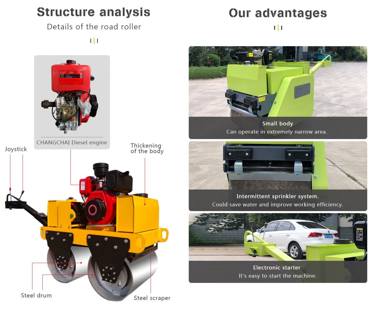 Катки имеют гидравлический привод SAUER, бесступенчатую регулировку скорости (вперед / назад), электрический запуск с контролем вибрации и электромагнитной муфтой, что упрощает эксплуатацию. Окрашен коррозионностойкой эмалью.