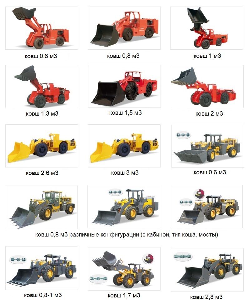Предлагаем различные модели спецтехники для подземных и шахтных работ - Погрузочно-доставочная машина (ПДМ) с объемом ковша 3 м3, на полноприводном шасси с шарнирно-сочлененной рабой в различном исполнении ковша (стандартный тип, боковая выгрузка) и опциями: цепи на шины, ковши.