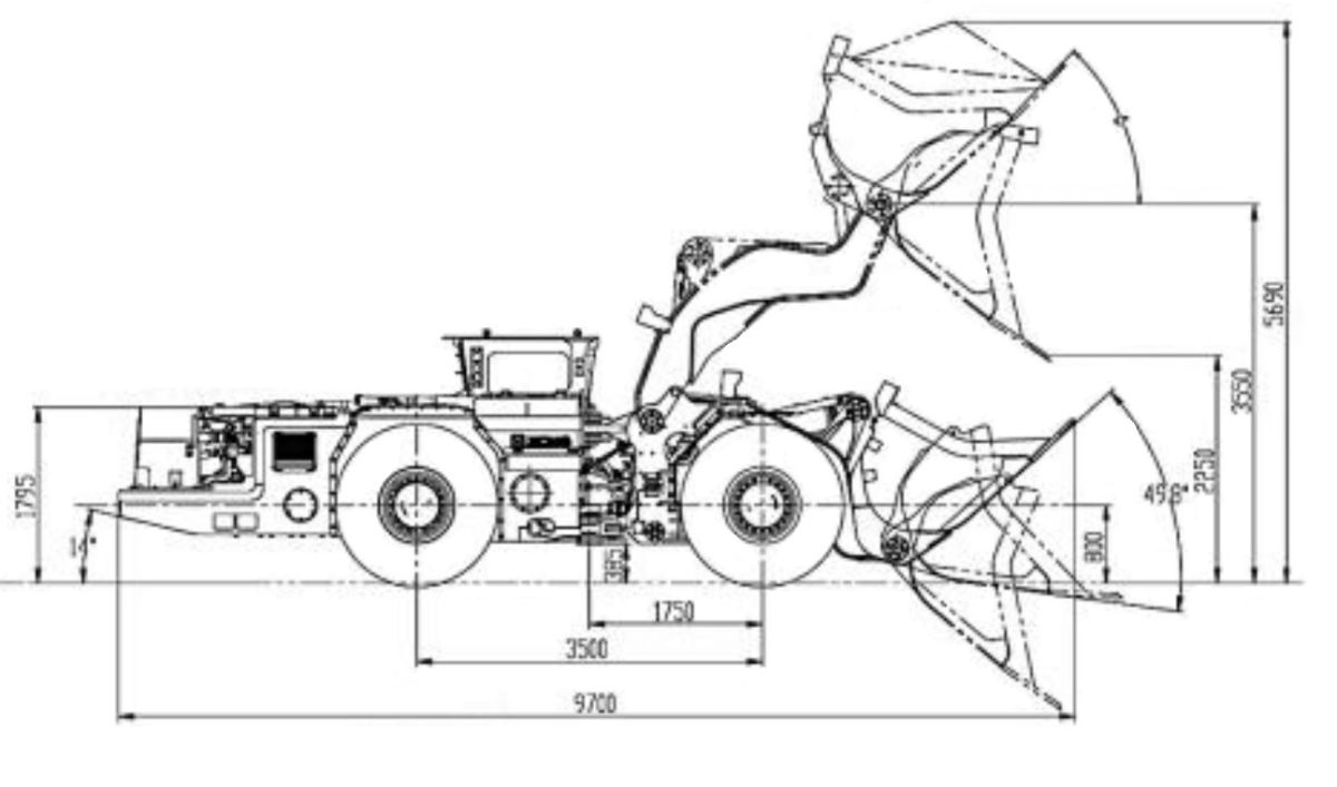 Высота выгрузки ковша 3550 мм