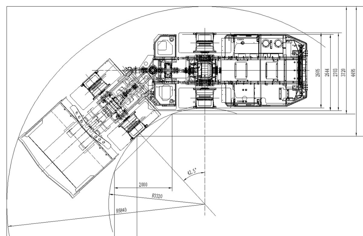 Радиус поворота (внутренний/внешний) R3320 / R6840 мм
