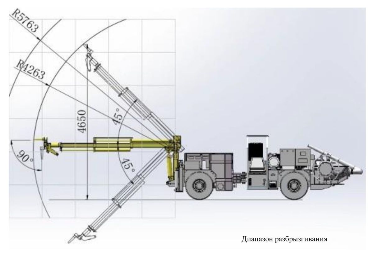 Шахтный торкрет NORD UPS-8J имеет минимальный размеры, что позволяет применять при минимальных и начальных выработках, шарнирно-сочлененная рама позволяет маневрировать в узких коридорах шахты.