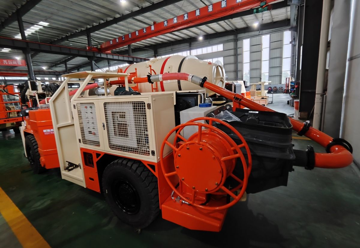 Шахтный торкрет NORD UPS-8J имеет минимальный размеры, что позволяет применять при минимальных и начальных выработках, шарнирно-сочлененная рама позволяет маневрировать в узких коридорах шахты.